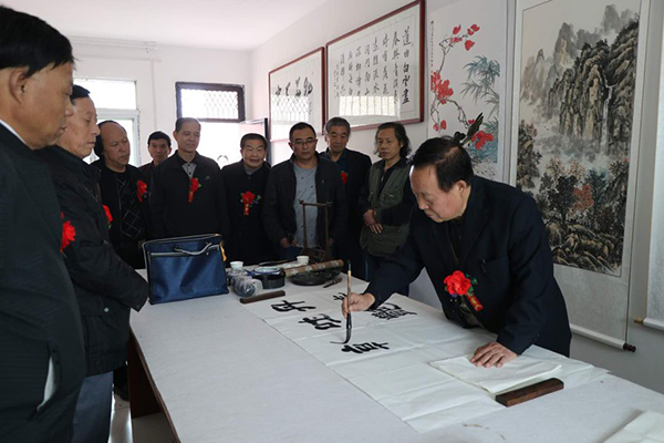 书画院所在地读书村党委书记刘三田同志,代表村委会向书画院祝贺。并发表了热情洋溢的讲话,表示大力支持书画院的工作,力争把读书村打造成与西安世园会会址齐名的艺术新村。