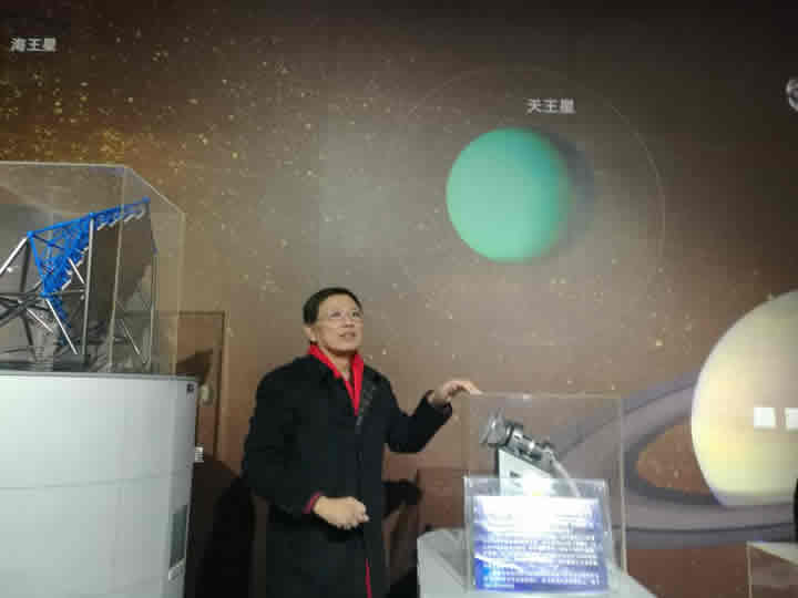 天文专家陈老师为中国一带一路网高管介绍观测站。