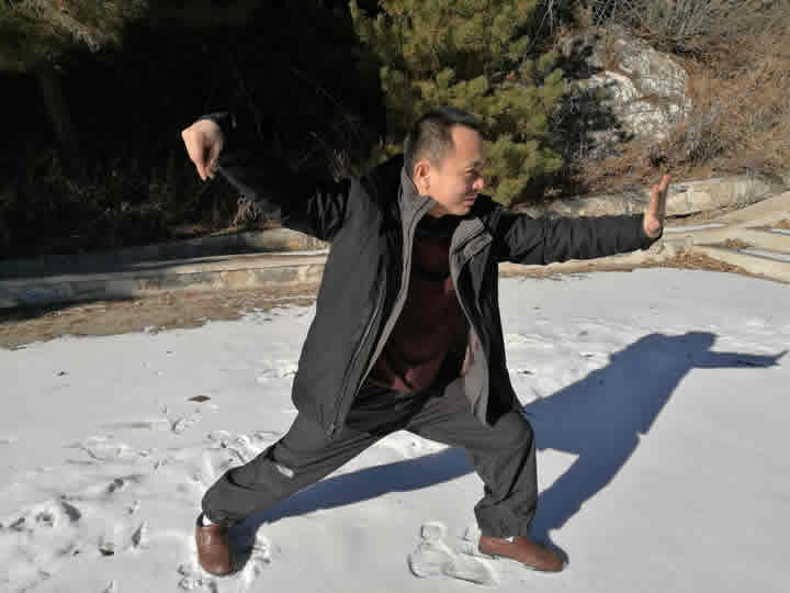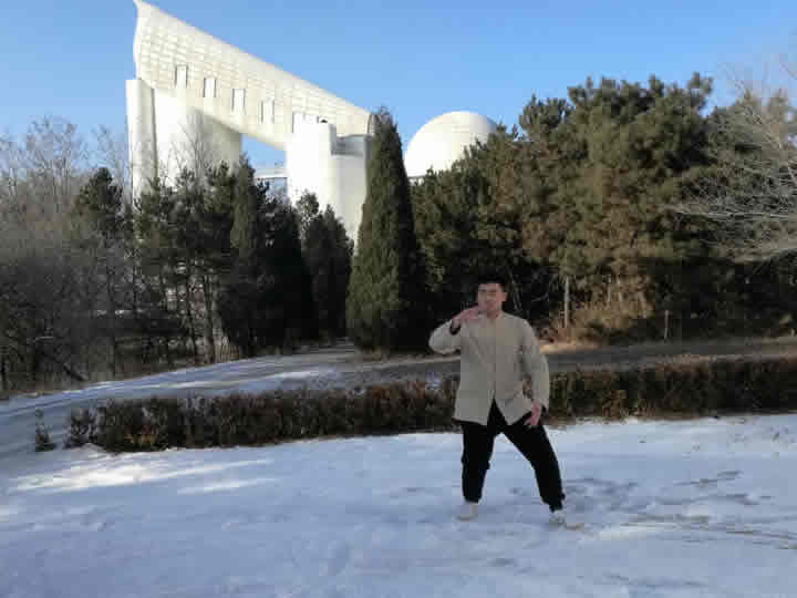 中国一带一路恒道太极研究院院长郑耀成在兴隆观测站展示武术。
