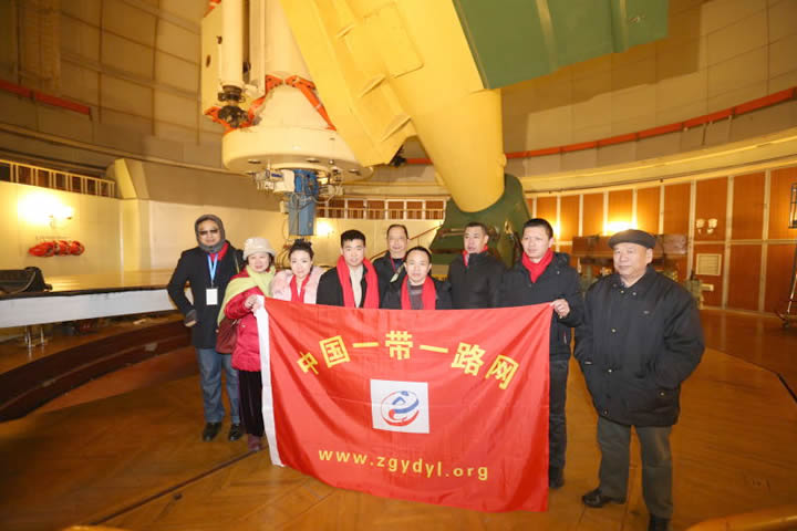 中国一带一路网总策划向吉来(左一)、中国一带一路网总编辑易键(右三)、中国一带一路恒道太极研究院院长郑耀成(右四)与中国一带一路网办事处高管在兴隆观测站合影。