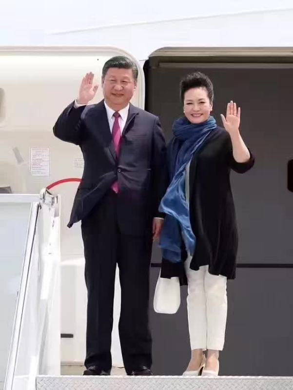 当地时间4月6日习近平乘专机抵达美国佛罗里达州,习近平和夫人彭丽媛走出舷舱并挥手致意。