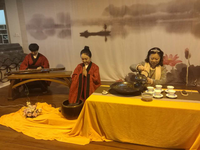 中国一带一路网消息:4月24日早上十点,北京八大处灵光寺甘露法会为前来参加观音开光的僧众奉茶,茗儒茶学派的传承人朱锦武老师带着茶艺师身着汉服,在精美的茶席间为韩国友人展示茶道艺术。参加茶文化交流的高僧们带着一颗虔诚的心,在泡茶之前点上一支香,让心境随着袅袅升起的香烟逐渐平静下来,不仅表达了茶人对天地的敬意,也显示了茶人对茶的尊重。茶艺师向韩国使者的夫人们介绍国饮茶道,展示茶器、茶壶、公道杯、观赏茶之汤色;干茶经过山泉水的洗礼,散发芬芳的味道,如金兰之芬,源远流长。《易系辞上》:“二心同心,其利断金;同心之言,其臭(同“嗅”)如兰。