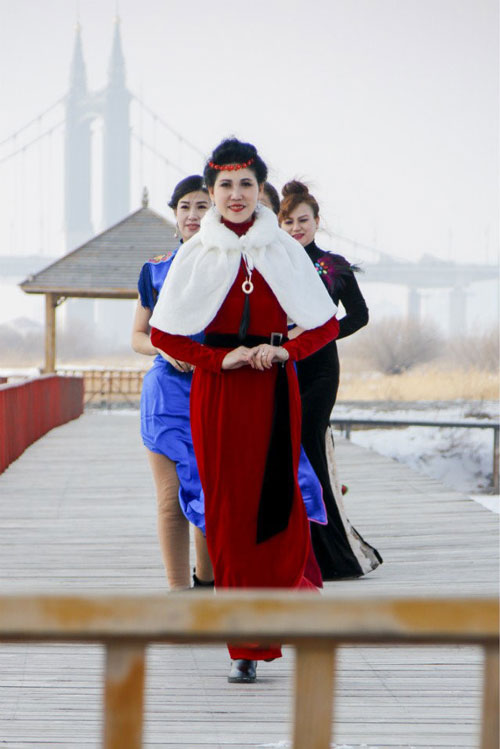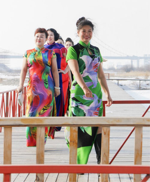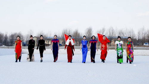 不是所有的花朵都能像梅花一样在严冬绽放,我们的旗袍佳丽们做到了,她们身着最具中华特色的旗袍在冰雪的天地里姹紫嫣红,美奂美伦演绎了民族服饰“冰雪旗袍”的别样风采。