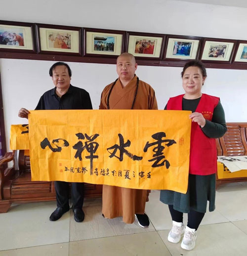 东北管理中心为灵隐寺捐赠了一带一路网华南管理中心监制的高科技防疫产品《K6X》消杀枪,大健康科学研究院东北分院捐赠了护眼产品《亮晶晶》医用护眼冷敷贴,东北管理中心办公室副主任刘丽敏带来自己素食工厂加工的素食产品,中外交流书画院黑龙江分院缪克同院长带来珍藏了40多年的(红星牌)高级宣纸和高级墨汁,书画家们挥毫泼墨为灵隐寺留下几十幅珍贵墨宝。祈愿众生慈悲喜舍,饱含着对出家人深深的敬意.用于修健寺庙积金。