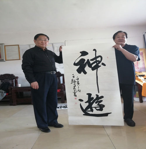 黑龙江省书法家协会理事、黑龙江日报美术馆签约书画家、哈尔滨书画院院长王显君大校与中外交流书画院黑龙江分院缪克同院长