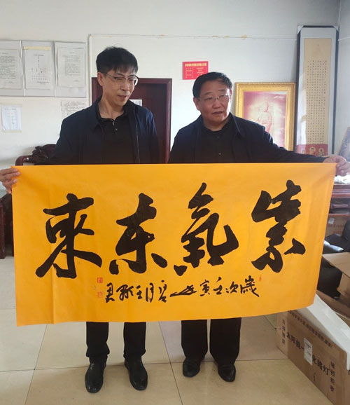 王显君大校赠送张汉东中共巴彦县委统战部,常务副部长兼民族宗教事务局局长墨宝《紫气东来》