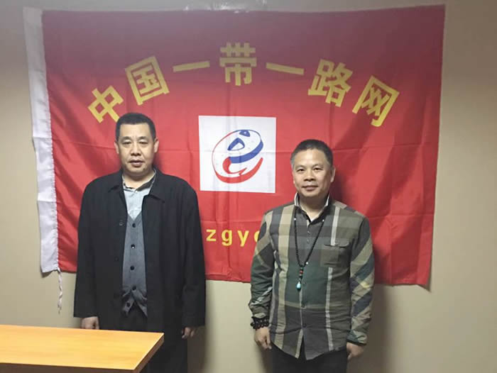 中国一带一路网总裁易键(左)与中国一带一路网广西办事处主任周朝能合影。