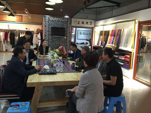 6月7日,中国一带一路网总裁易键、总策划向吉来等一行来吉林旗袍馆考察,中国一带一路网省办事处主任许海泉及吉林旗袍协会秘书长朱文俊陪同考察,图为:吉林旗袍协会秘书长朱文俊向中国一带一路网总裁易键等汇报工作。